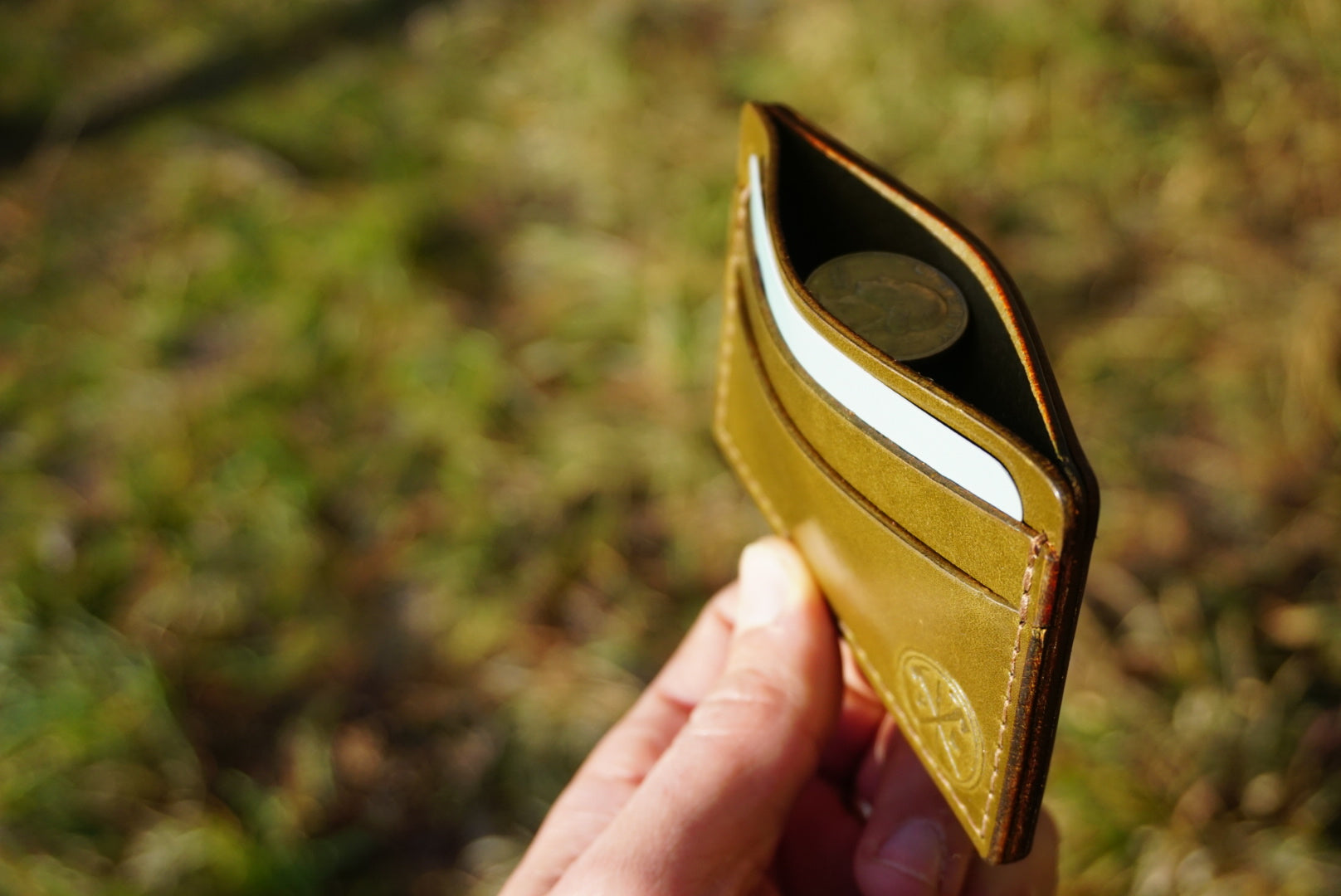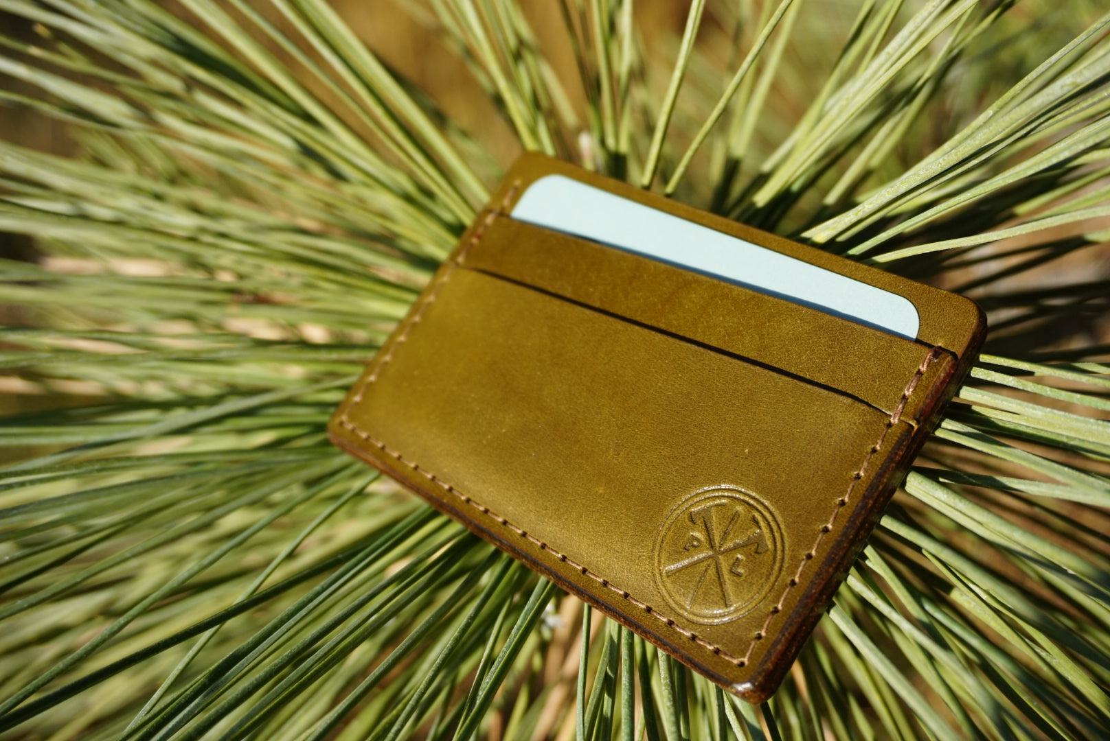 Our deluxe card wallet, these are by far the most popular minimalist wallet we make. Hand made in house right here in Winthrop, using Wickett & Craig traditional harness leather. Two card slots up front, room for a little emergency cash/more cards in middle, and a spot for your I.D. on the back. Available in medium brown, olive green, and black.